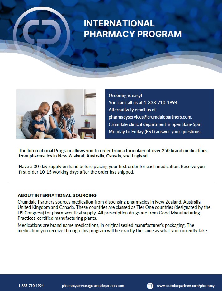 Additionally, you have access to the Franklin Health Patient Assistance Program, which offers a prescription medication advocacy service. Your personal advocate will find cost-saving opportunities and, if eligible, secure medications at no cost. For more information, visit crumdalepartners.com.
